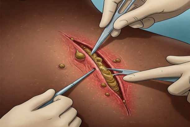 Relief of pain and infection by draining pus.